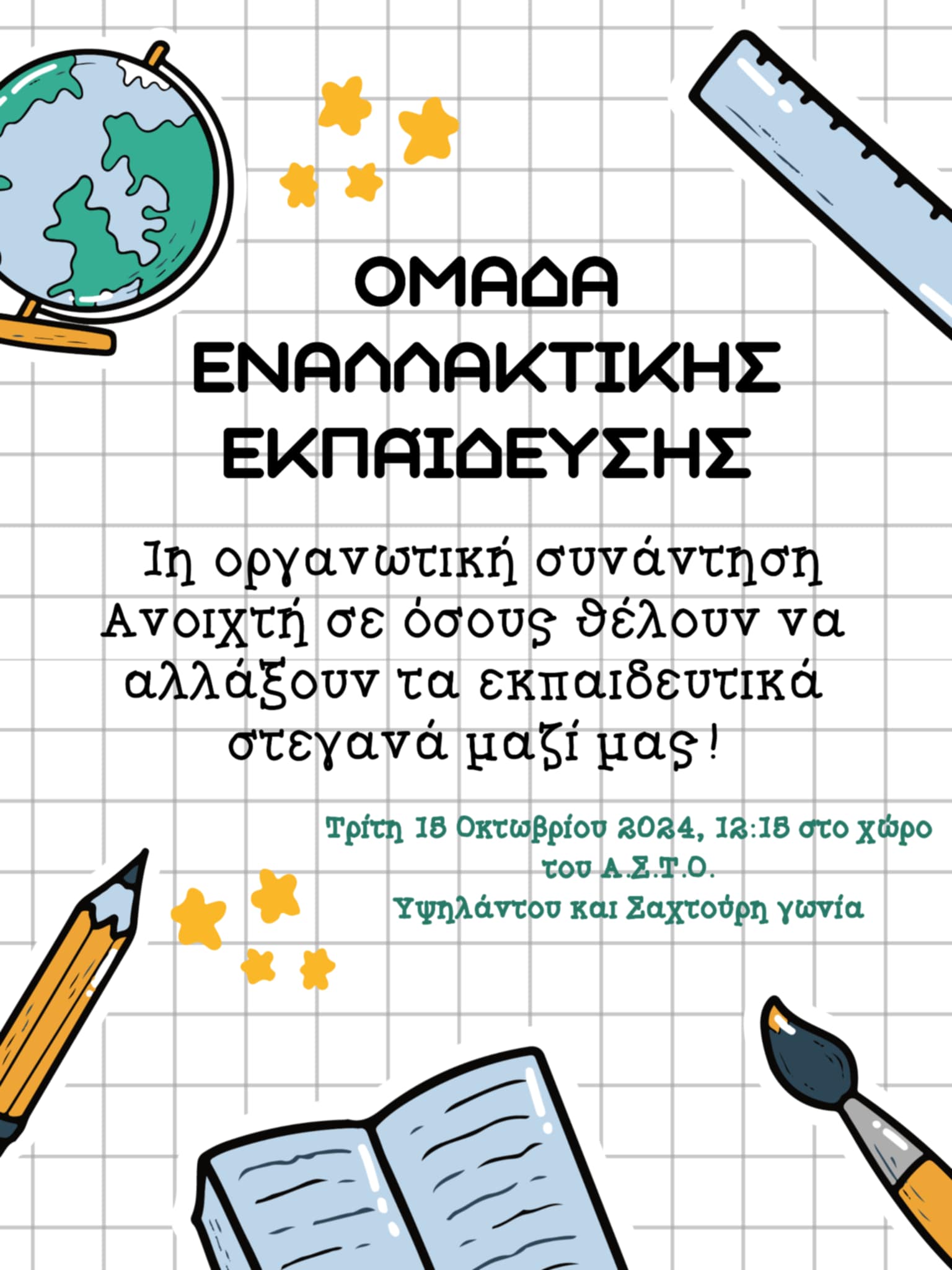 Επιλογή από δράσεις που έγιναν με μαθητές/φοιτητές το 2025-2026 23/3/26: Εκπαιδευτικό πρόγραμμα με άλλο τμήμα φοιτητών του παιδαγωγικού τμήματος Πανεπιστημίου Πατρών. 17/3/26: Εκπαιδευτικό πρόγραμμα με τμήμα φοιτητών του παιδαγωγικού τμήματος Πανεπιστημίου Πατρών. 12/3/2026: Εκπαιδευτικό πρόγραμμα με μαθητές από το 6ο Γυμνάσιο Πάτρας 4/3/2026: Εκπαιδευτικό πρόγραμμα με μαθητές από το ΕΝΝΕΓΥΛ Πάτρας.