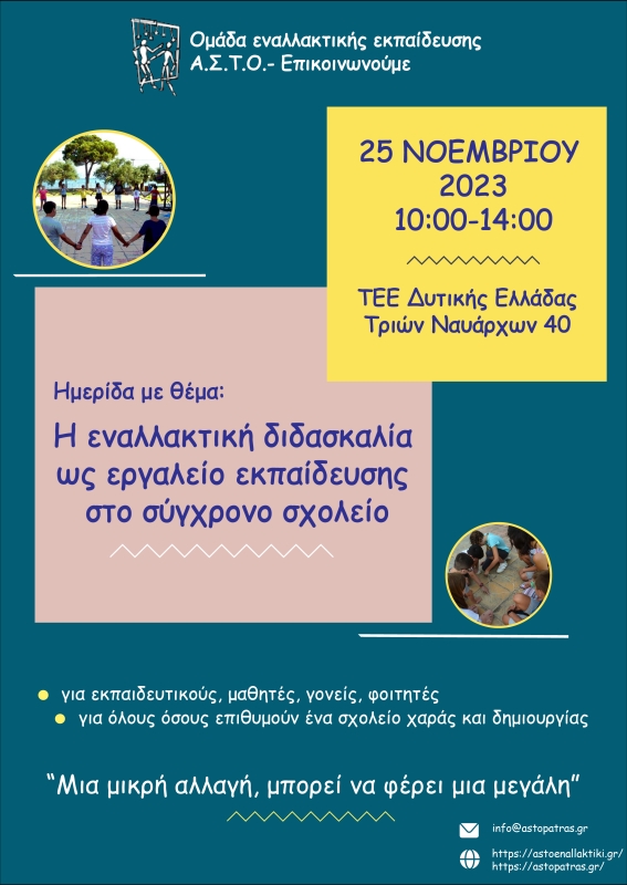Ημερίδα: Η εναλλακτική διδασκαλία ως εργαλείο εκπαίδευσης στο σύγχρονο σχολείο, 25/11/23